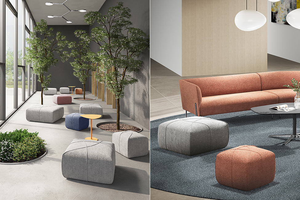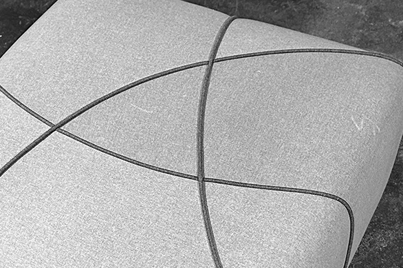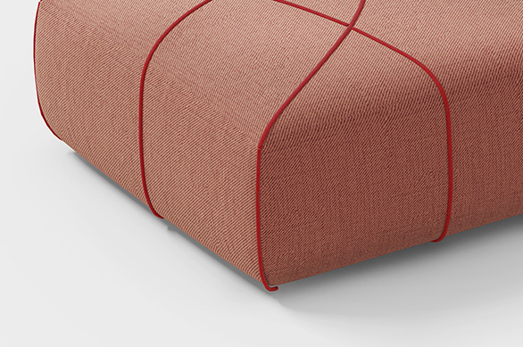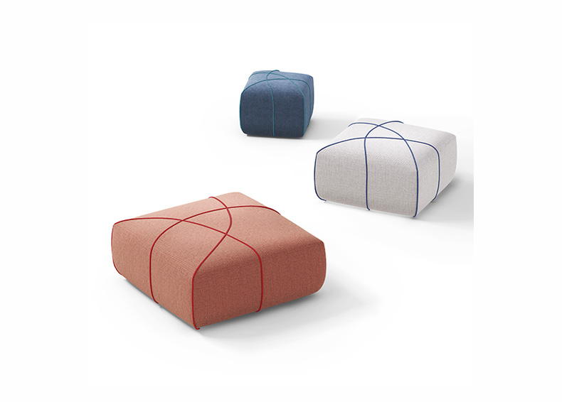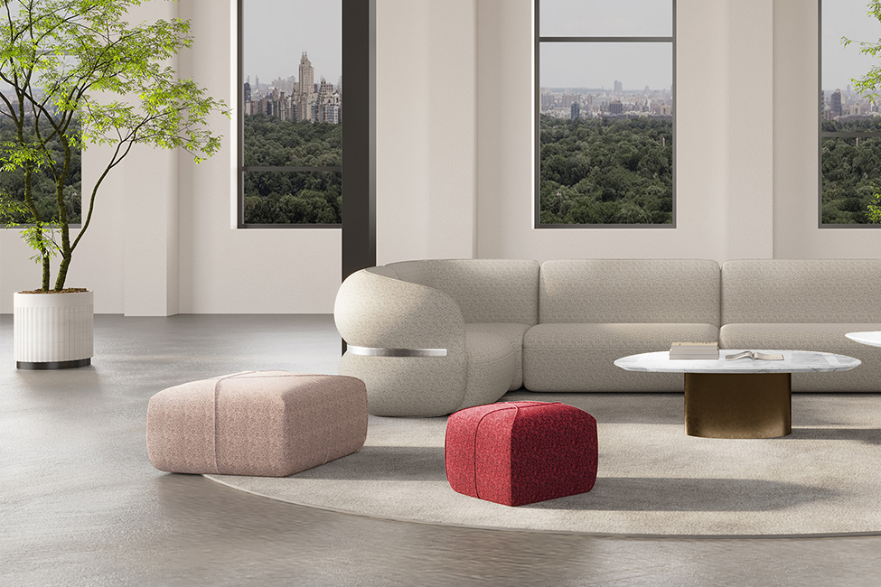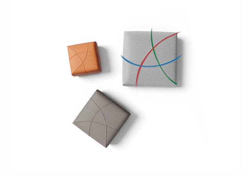 The inspiration for the ALL pouf comes from the paintings of the Italian abstract artist Piero Dorazio, renowned for his atmospheric grid works where grids intersect with flowing brushstrokes, creating vivid movements of color and texture. The designer distills from this the forms of arcs, lines, and intersecting patterns, where arcs symbolize the organic shapes of nature and reflect the structural growth patterns found in the natural world.
