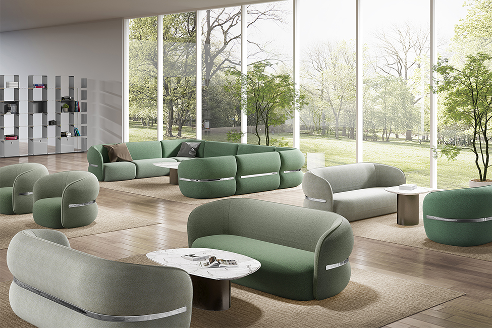 The back of BUTTERFLY sofa features inset metal decorative strips, adding a sense of nobility and multidimensional depth to its design. This detail not only infuses the sofa with vitality and vibrancy but also shows its unique artistic atmosphere. The various modular combinations of the sofa enhance space with diversity and flexibility, catering to different functional and aesthetic preferences.
