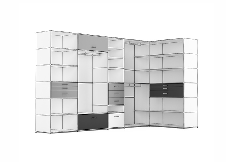 量身定制的更衣空间,满足您的个性化需求。既可打造壁挂式开放单元,也能组合成功能性封闭衣柜、抽屉柜或精致的鞋柜。为您的家塑造独特且经典的专属更衣空间吧!