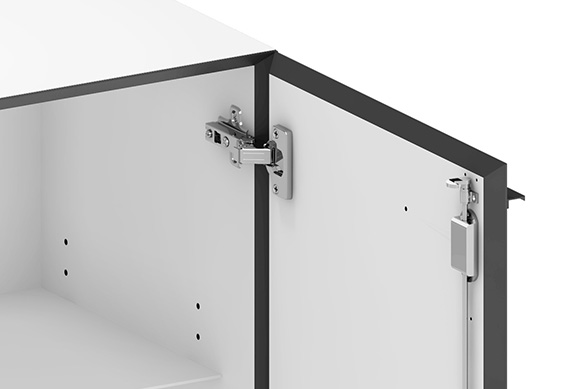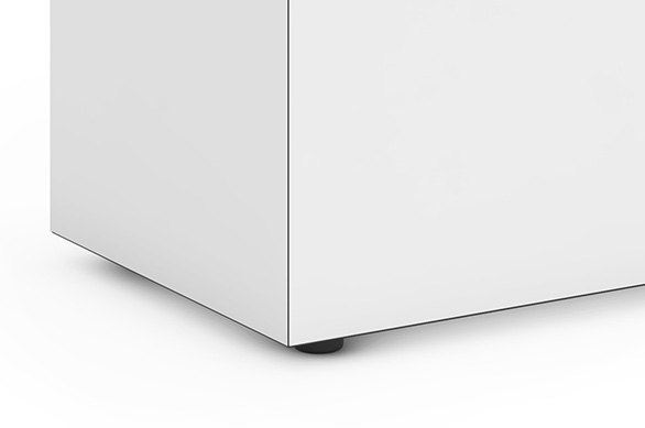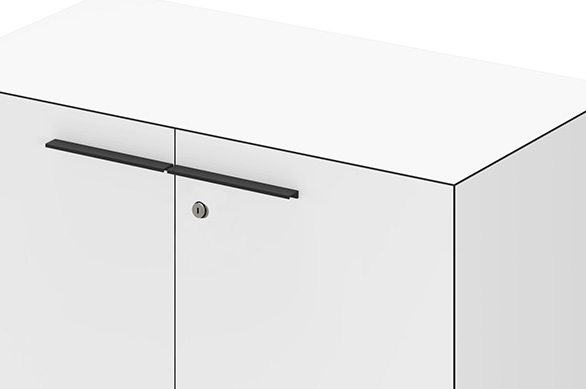 其独特的现代美学设计体现在45°斜切边的板件接缝,强调出柜体线条与设计感,黑色线条与白色面板完美结合,呈现出立体感十足的轮廓。精致的黑色窄边拉手与线条轮廓相得益彰,形成和谐统一的外观风格。